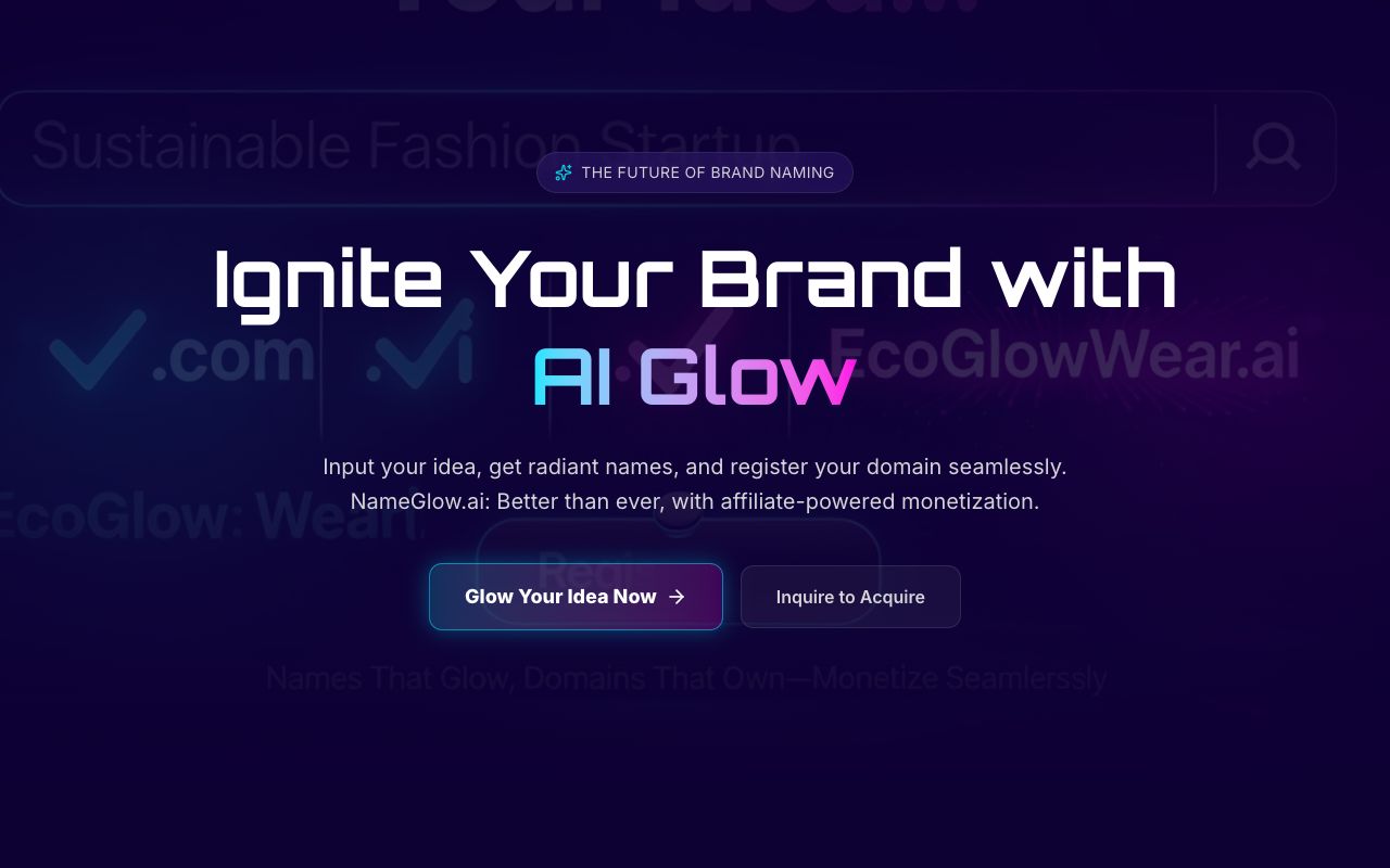 Complete the form below to inquire about pricing, partnership, or acquisition details for nameglow.ai.